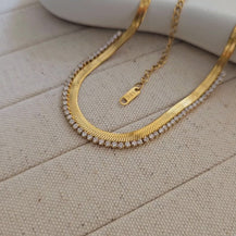 18K Gold Plated Snake Chain Zirconia Tennis Necklace-1  taahirajewellery