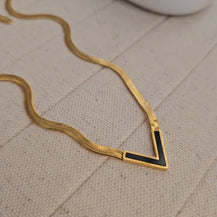 Dainty V Shape Snake Necklace - Black